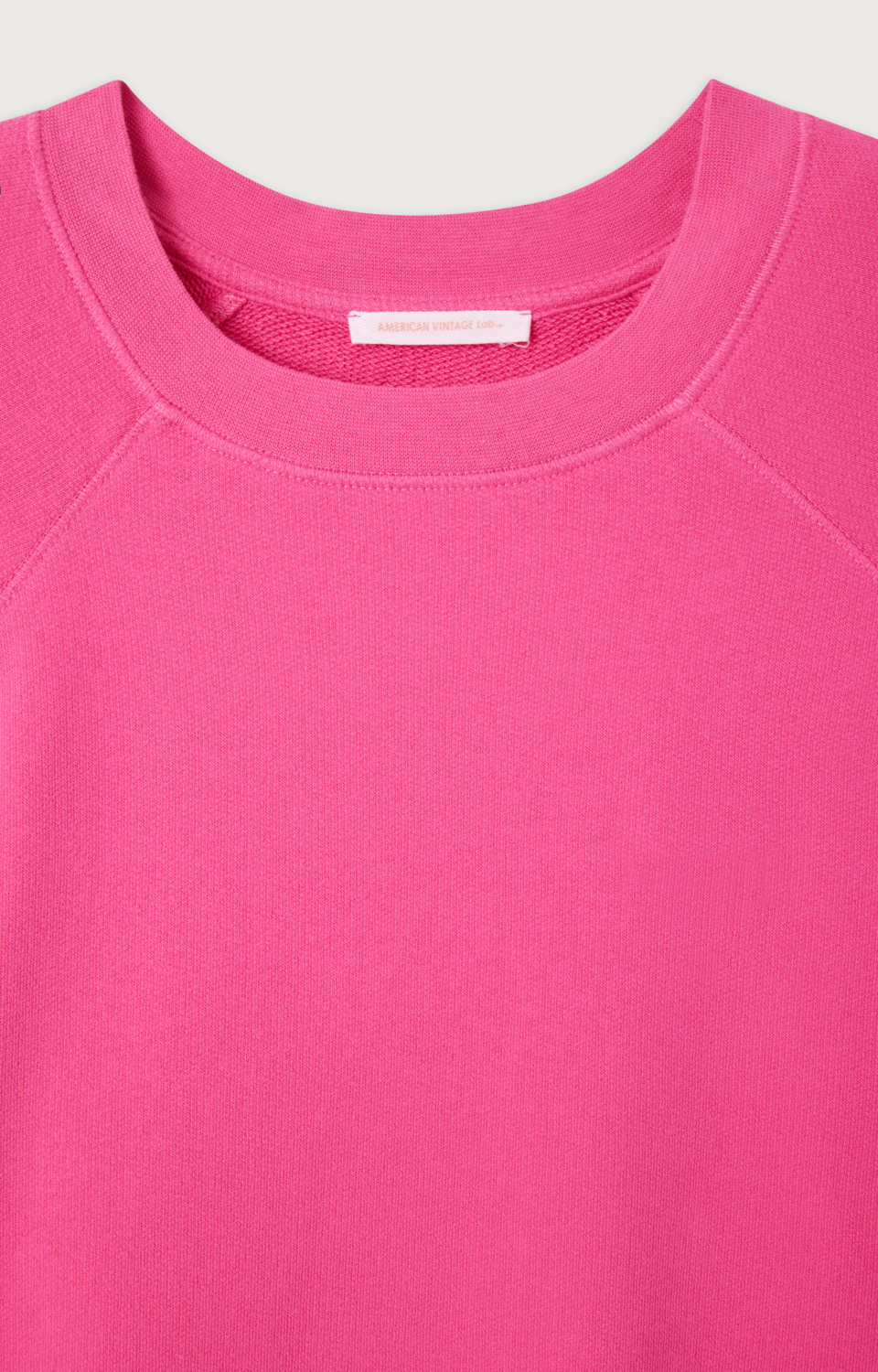 Long-sleeved sweatshirt Loose cut Round neck Raglan sleeves Light, stretchy cotton Soft fleece Oversize. Worn loose. Buy your usual size.