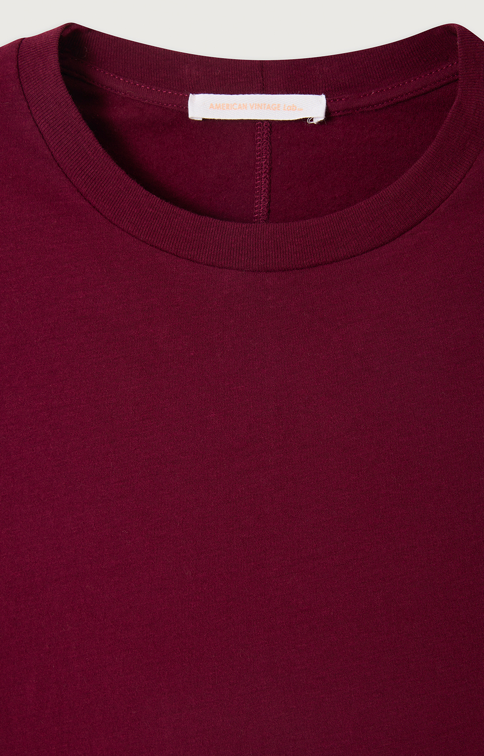 Fitted t-shirt Long sleeves Round neck Fine, super soft cotton Peach-skin feel Normal size. Buy your usual size.