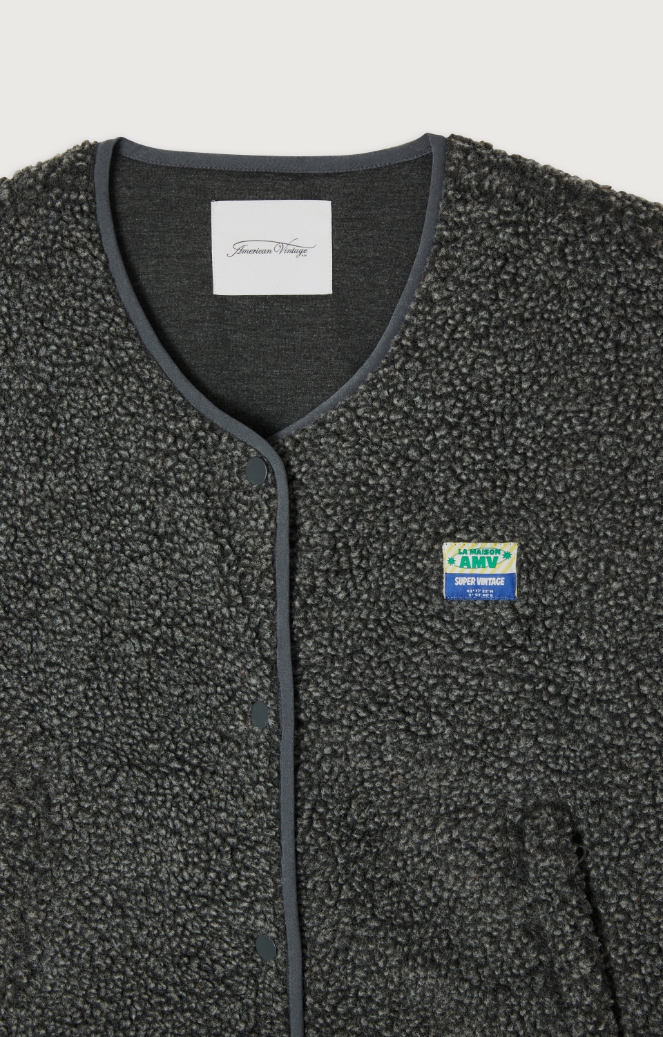 Sleeveless Press-stud fastening Two zipped pockets "AMV" logo patch stitched on the chest Shearling effect Polyester lining Normal size. Take your usual size.